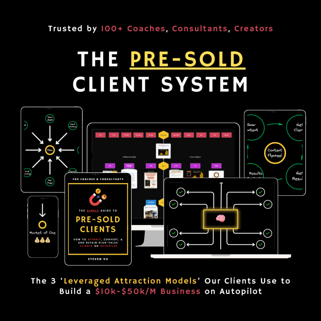 Get the 3 'Leveraged Attraction Models' our clients use to attract 10-15 Pre-Sold Clients a month & grow